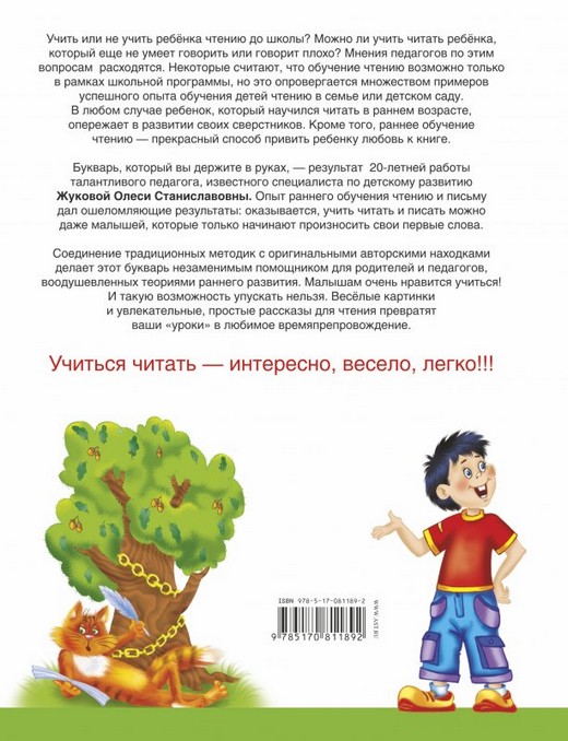 Букварь, который вы держите в руках, - результат 20-летней работы талантливого педагога, известного специалиста по детскому развитию Жуковой Олеси Станиславовны. Опыт раннего обучения чтению и письму дал ошеломляющие результаты: оказывается, учить читать и писать можно даже малышей, которые только начинают произносить свои первые слова.