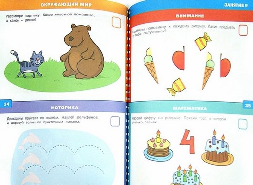 Задания в книгах Тесты составлены по разделам: мышление, грамота, развитие речи, математика, окружающий мир, моторика, сенсорика, внимание, память. Ребёнок ответит на вопросы по различным темам, научится размышлять и решать логические задачки, познакомится с основами чтения и счёта и подготовит руку к письму. В конце книги вы сможете подвести итог, подсчитав количество правильно и неправильно выполненных заданий. Выполняя задания, играя с яркими наклейками, ваш ребёнок с интересом и пользой проведёт время.