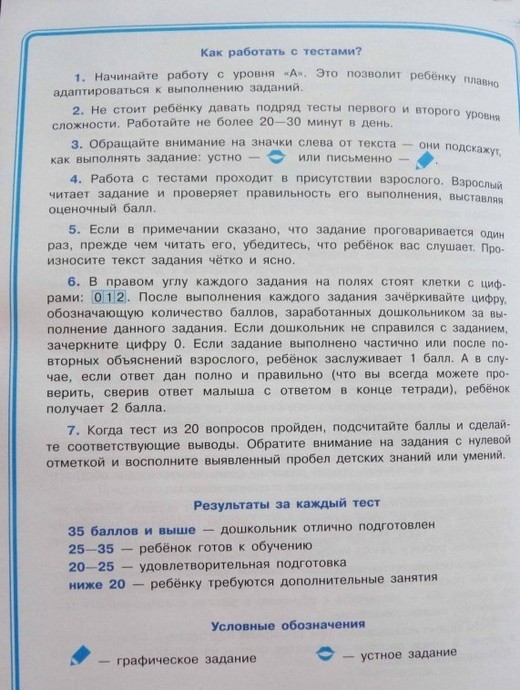 Пособие представляет собой сборник из 5 универсальных тестов, выявляющих готовность ребенка к обучению в школе. Каждый тест содержит задания по развитию речи, основным математическим представлениям, основам грамоты, развитию основных психических функций (внимание, память, произвольность, обучаемость, развитие мелкой моторики), знаниям об окружающем мире, а также мотивационной сформированности.