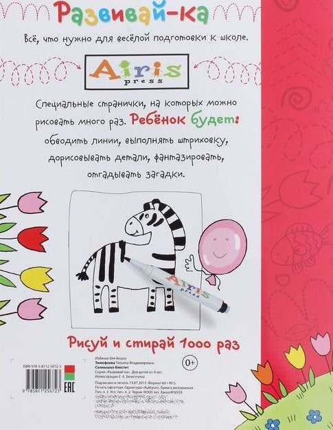 Купить Раскраску Рисуй и стирай Солнышко блестит + маркер в Новосибирске Вы можете в магазине развивающих и настольных игр "Игры Почемучек"