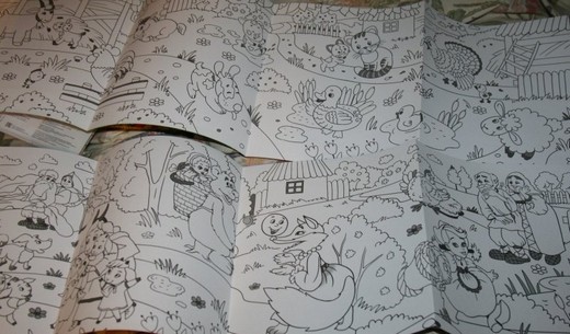 Набор из 4-х раскрасок-раскладушек. Если все раскраски разложить, то получится целых четыре метра раскрасок. Раскрашивать картинки можно не только карандашами, но и фломастерами. Малыши смогут вместе с друзьями раскрасить чудесные иллюстрации и почувствовать себя настоящими художниками.