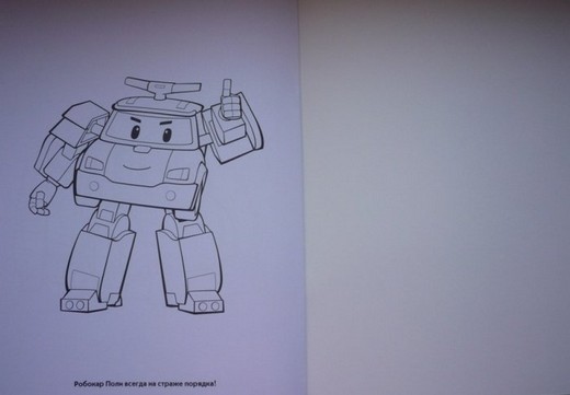 Такая раскраска, представленная торговой маркой "Эгмонт", станет хорошим подарком ребенку, который является поклонником мультфильма "Робокар Поли и его друзья". На ее страничках изображены машины-трансформеры, которые в любую минуту готовы бросится на помощь тем, кто в ней нуждается. А ребенку предстоит раскрасить машинки, а заодно и освежить в памяти события, происходившие в мультфильме.