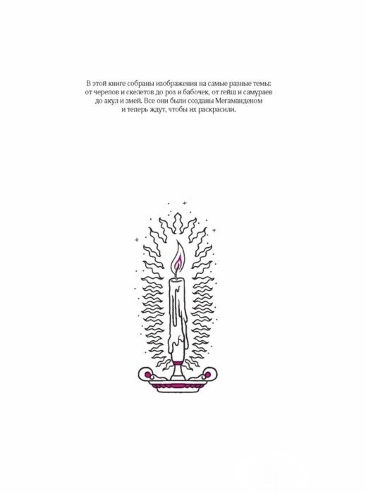 Уникальные рисунки известного художника Мегамандена! Черепа, пистолеты, природа, винтаж - вместе являются основанием его стиля. Более 100 оригинальных иллюстраций для вашего творчества. Попробуйте сделать рисунок в стиле автора, или найдите свой собственный стиль. Вы можете не только раскрасить картинку, она также может стать основой для рисунка на теле. От издательства подарившего миру "Таинственный сад" и "Зачарованный лес" Дж. Бэсфорд.