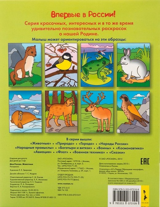 Купить Раскраску Животные Моя Россия в Новосибирске Вы можете в магазине развивающих и настольных игр "Игры Почемучек"