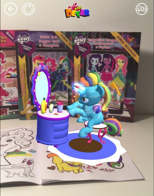 Это не просто раскраска, а волшебная история о приключениях героев из Понивилля, оживающих прямо у тебя на руке! С помощью бесплатного мобильного приложения Devar KIDS ты можешь перенести любимых Пони с экрана в реальный мир и узнать как много магического и сказочного в дружбе! Хочешь увидеть полёт Радуги Дэш или магию Сумеречной Искорки? Каждая страница раскраски «Дружба – это Чудо!» покажет тебе особенные навыки любимых героев и перенесёт их в твой мир! А в конце книги ты сможешь играть со всеми Пони сразу! - Самые яркие моменты любимого мультфильма с живыми героями у тебя на руке!