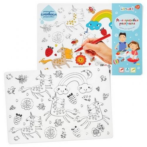 Купить многоразовая раскраска "Единороги" в Новосибирске Вы можете в магазине развивающих и настольных игр "Игры Почемучек".