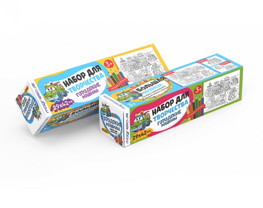 Комплектация: 1 раскраска А3, 2 раскраски А4, образец А5, карандаши 6 цветов.