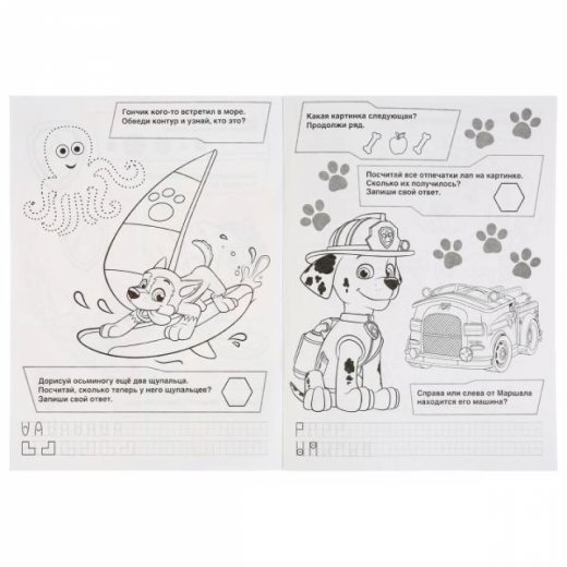 Для маленьких любителей «Щенячьего патруля» – все герои мультсериала в одной книжке. А ещё в ней интересные задания и упражнения на подготовку руки к письму.