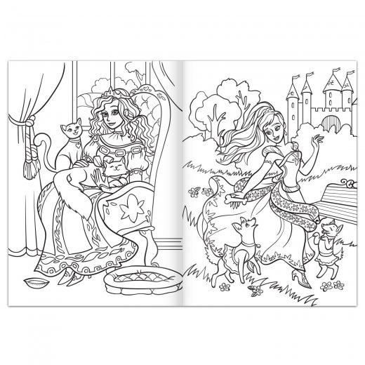 Девочка с удовольствием будет раскрашивать, а изображения прекрасных принцесс и милых животных сделают творческие занятия ещё более интересными.