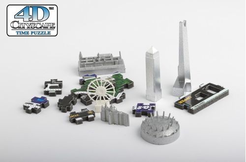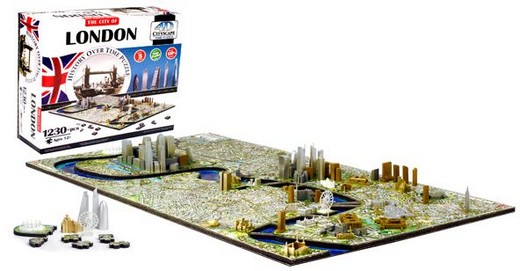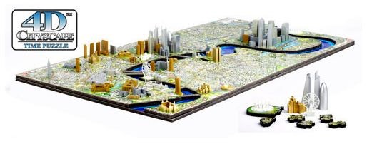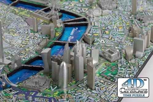 Модели строений крепятся в специальные отверстия в 2D деталях, из которых собирается карта улиц Лондона. В комплект пазла 4D Cityscape входит буклет со схемой сборки и указателем дат возведения зданий города. Город собирается послойно, начиная с нижнего слоя, выполненного из картона с картой древнего Лондона, следом собирается 2-й слой суши, выполненный из вспененного полимера – карта современного Лондона, третий слой – модели строений.