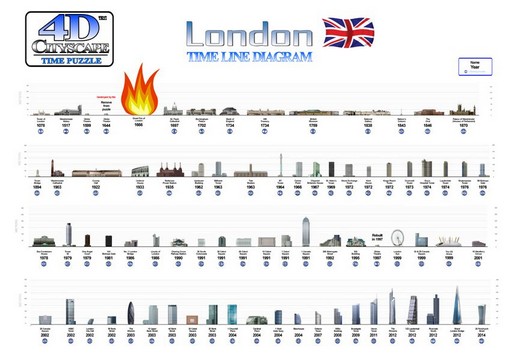 4D пазл Лондон 1230 деталей – это просто восхити тельный подарок для юного интеллектуала и любителя головоломок. Он воспроизводит одну из самых известных в мире моделей городской архитектуры – Лондон не только в 3-х пространственных измерениях, но и в четвертом – Времени, охватывая период застройки мегаполиса на протяжении 930-ти лет. Пазл содержит более 1230 деталей, из которых 73 – модели зданий, выполненные из пластика. Собирая пазл, вы узнаете историю застройки города, пройдете все этапы, начиная с 1078 года и сквозь будущее до 2015 года.