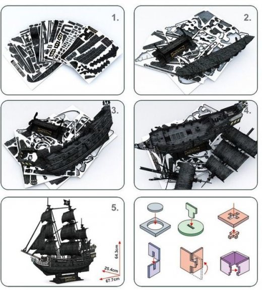 Сборка такой головоломки понравится как ребенку, так и взрослому. Детали склеивать не нужно, они соединяются между собой. Как только последняя деталь будет на месте, все части крепко зафиксируются. Объемная фигурка корабля станет прекрасным сувениром или же подарком для кого-то из близких или друзей. Можно будет поместить ее на самое видное место в доме чтобы любовались все.