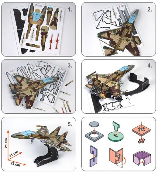 Сборка такой головоломки понравится как ребенку, так и взрослому. Детали склеивать не нужно, они соединяются между собой. Как только последняя деталь будет на месте, все части крепко зафиксируются. Объемная фигурка грозного истребителя станет прекрасным сувениром или же подарком для кого-то из близких или друзей. Можно будет поместить его на самое видное место в доме чтобы любовались все.