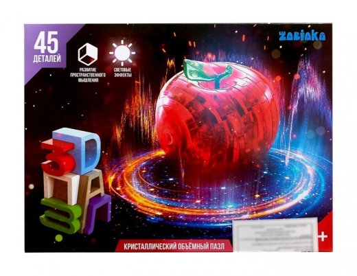 3D пазлы Волшебное яблоко - это весьма интересный и занимательный подарок для ребенка, который любит что-нибудь собирать и мастерить. Он собирается по принципу пазла, когда у каждого элемента есть свое уникальное место, и чтобы собираемая фигурка держалась, необходимо правильно их скрепить. Для сборки не требуется клей. Детали изготовлены из особого пластика, напоминающего хрусталь, что заставляет ее мерцать на свету. Это придает фигурке очень необычный и привлекательный вид. Собранная игрушка сможет украсить комнату ребенка или любое другое помещение.