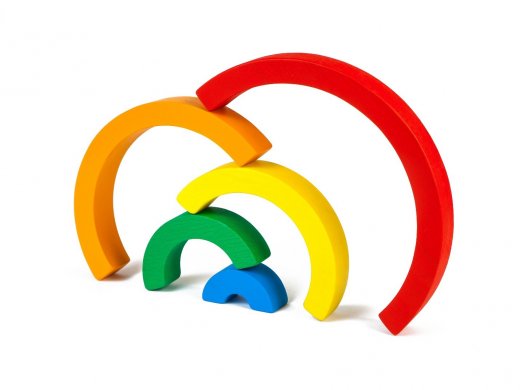 "Радуга малая деревянная" - состоит из пяти разноцветных дуг и дает ребенку простор для фантазии.