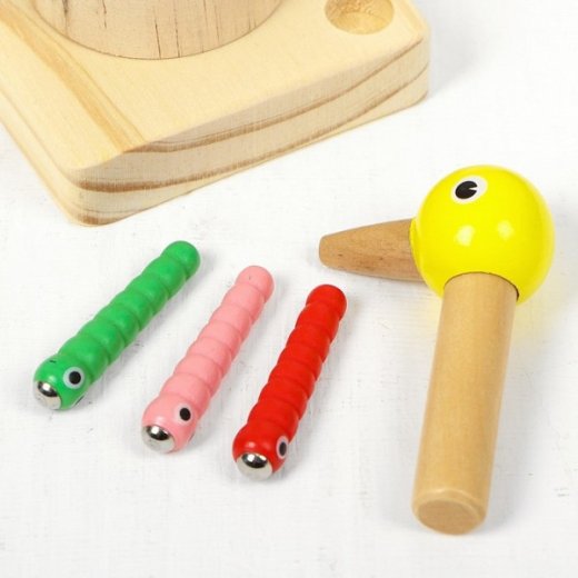 Комплектация: 5 червячков, магнитная палочка в форме дятла