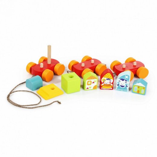 Паровозик со сказочными героями, который можно катать за шнурок – мечта многих малышей. Ребенку удастся самому сцепить состав, а также придумать сказочный сюжет для его пассажиров.