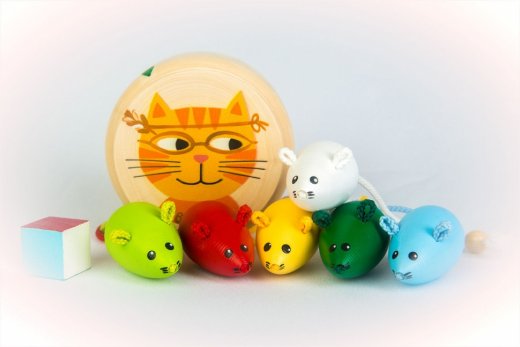 Эта игра поразит вас не только своей интересной задумкой, но и качеством исполнения. Деревянные мышки такие красивые и яркие, что их хочется держать в руках. Они изготовлены из качественной древесины, имеют приятный запах и расписаны вручную акриловыми безопасными красками. Плошка тщательно зашкурена, без зазубрин и заноз.