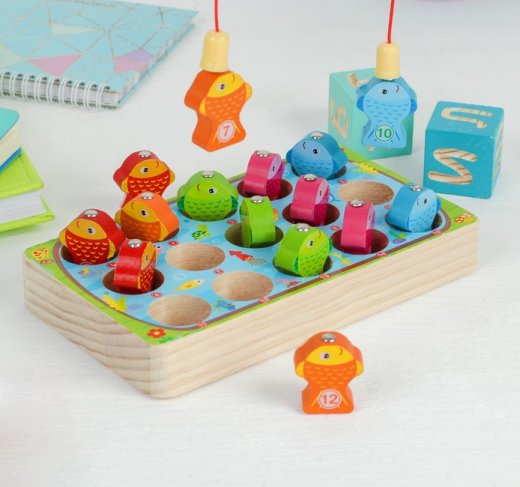 Рыбалка — это популярная развивающая игрушка, которая позволит малышу увлекательно и с пользой провести время. Поймать яркую добычу не так легко, как кажется! Кроха должен продемонстрировать навыки концентрации, пространственное мышление и хорошую координацию движений, чтобы совместить удочку и фигурку.