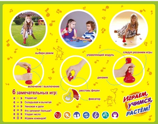 Состав набора: модуль говорящий, 10 игровых фишек, инструкция, батарейки.