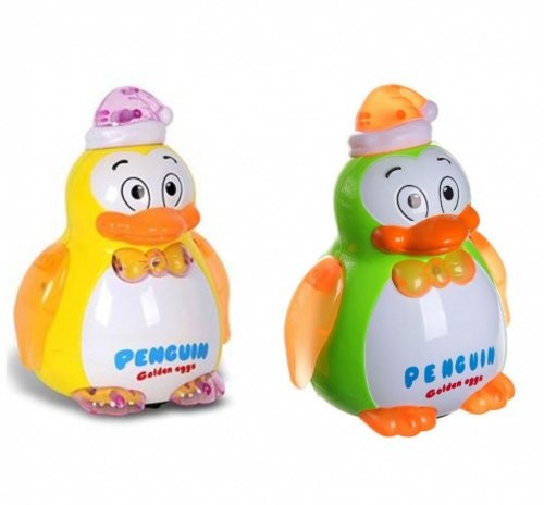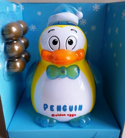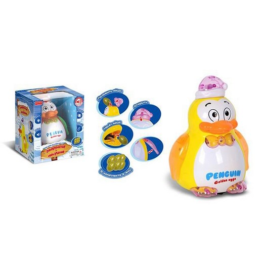 Милая зверушка-несушка, изображающая пингвина, привлекает своей яркой расцветкой и веселым дизайном. Она движется в произвольном направлении и своей походкой так напоминает настоящего пингвина! Пингвин может нести яйца, для этого нужно поместить пластмассовый элемент под колпачок птичке. Игрушка также поет песенку на русском языке и демонстрирует световые эффекты. При движении машет светящимися крыльями.
