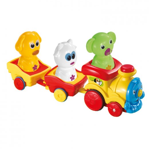 "Музыкальный поезд BeBeLino с животными" -красивый музыкальный паровоз с двумя вагончиками и уютными местами для пассажиров непременно увлечет вашего малыша и не даст ему заскучать. Когда кроха нажмет на машиниста-животное, состав начнет самостоятельно двигаться. Милые домашние питомцы будут вращаться в вагончиках во время движения. Забавные звуковые эффекты, яркие цвета и стильный дизайн понравятся каждому непоседе!