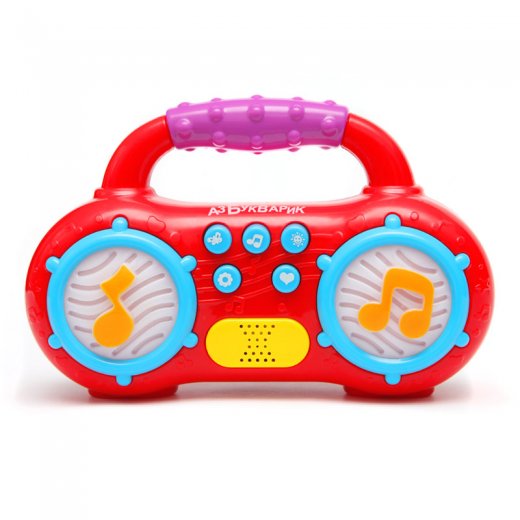 С магнитофончиком "Мульти-пульти" можно устроить настоящую дискотеку! Включай светомузыку – слушай 16 песенок ("Весёлая карусель", "Песенка о лете", "Настоящий друг", "Такая-сякая", "Если добрый ты", "Песня Львёнка и Черепахи", "Какой чудесный день!", "Песенка Умки", "Заинька, попляши!", "Лиса по лесу бежала", "Совушка-сова", "Топ-топ, топотушки", "Два весёлых гуся", "Дуэт Короля и Принцессы", "Добрый жук", "Чунга-чанга") и 9 мелодий ("Антошка", "Частушки", "Калинка", "Песенка фермера", "Собачий вальс", "Танец утят", "Арам-зам-зам", "Чижик-пыжик", "Чунга-чанга") и забавные звуки, любуйся яркими огоньками. Компактный размер и удобная ручка позволят всюду носить с собой этот замечательный магнитофончик.