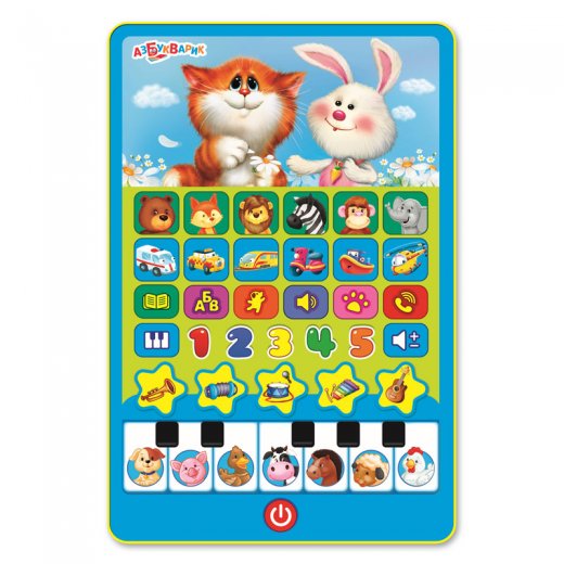 Планшетик "Мои друзья зверята" прекрасно подойдёт для всестороннего развития вашего ребёнка! Планшетик воспроизводит звуковые эффекты и музыку. Игра включает: 4 темы (цифры, цвета, животные, машинки), вопросы и загадки, 15 песенок и мелодий, 3 сказки ("Курочка Ряба", "Репка", "Колобок"). В игрушку встроено мини-пианино. Кроме того, внутри упаковки есть QR-код, по которому на планшет или смартфон можно скачать интерактивную азбуку.