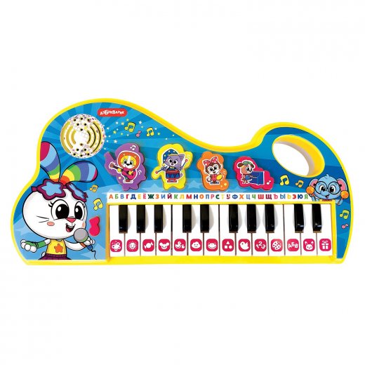 Нажимай на кнопочки – знакомься с музыкальными инструментами, слушай более 20 песенок и мелодий ("Лето", "Стало солнышко теплей", "Друзья", "Прятки", "Весёлые противоположности", "Дождик", "Танец зверят", "Формы разные на свете", "Ладушки", "Начинаем счёт подряд", "Божья коровка", "Песенка про алфавит", "Пляшут весело детишки", "Бум-Бум", "Зарядка", "Барбарики" и др.). Играй на клавишах пианино – запоминай ноты и развивай музыкальный слух. А в режиме "Волшебное пианино" каждый ребенок сможет сам сыграть 5 известных мелодий ("Собачий вальс", "Как у наших у ворот", "Каравай", "Два весёлых гуся", "Серенький козлик").
