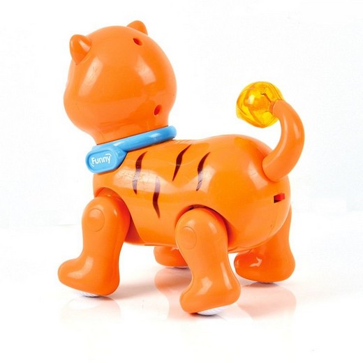Игрушка музыкальная "Тигр" настоящая игрушка-компаньон для любознательного и неутомимого малыша. Зверушка не только забавно движется в разных направлениях под веселую музыку, побуждая ребенка следовать за собой, она споет крохе веселую песенку, даря ему хорошее настроение и развивая чувство ритма. Во время движения тигр качает головой и машет хвостиком. Благодаря встроенному датчику, при каждом движении тигренка у него загораются глазки и хвостик, воздействуя на развитие цвето-визуального восприятия. Игрушка выполнена из ударопрочного экологичного пластика, безопасного для вашего малыша, не содержит острых и хрупких деталей.