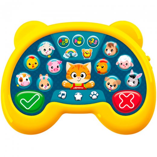 Игровая приставка малыша «Котик Всезнайка» – одновременно яркая и увлекательная игрушка в форме джойстика, и настоящий познавательный гаджет для Вашего ребенка!