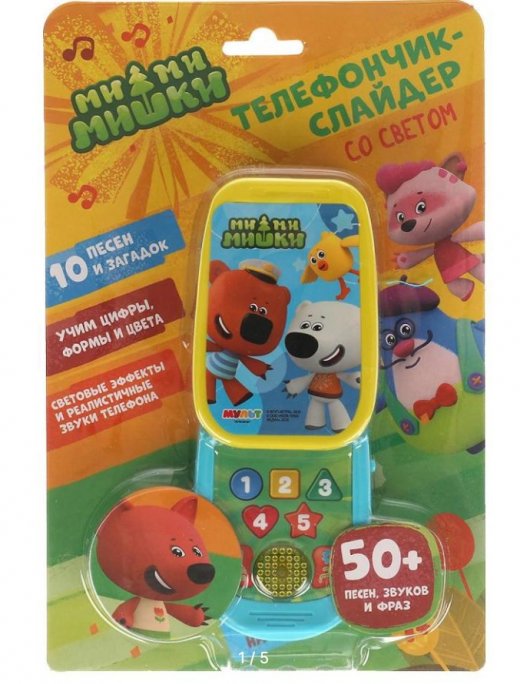Вашего малыша приведёт в восторг эта игрушка в виде яркого телефона. Он с удовольствием будет нажимать на фигурные кнопки разных цветов и слушать весёлые песенки из любимого мультфильма. Благодаря компактным размерам игрушку удобно брать с собой на прогулку или в поездки.
