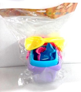 Состав набора: ведро большое, ведро малое, совок, 3 формочки.