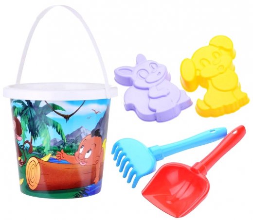 Большой набор для песочницы сделает игру интереснее и веселее! В ведерко с красивой наклейкой можно набирать песочек для куличиков и фигурок. Лопаткой — засыпать песок в формочки и разравнивать обратной стороной. Грабельками можно рыхлить землю. Игровые предметы не имеют острых краев, все элементы закруглены. Они изготовлены из безопасного нетокисчного пластика, не обладают запахом.