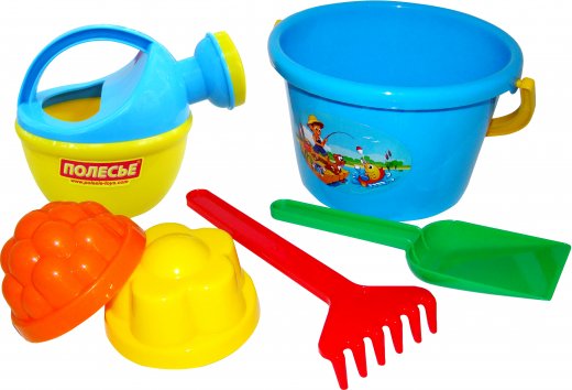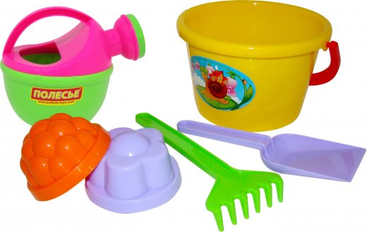 Состав набора: ведро, лопатка, грабельки, 2 формочки, лейка.