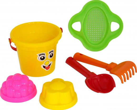 Состав набора: ведро маленькое, сито-цветок, совок №2, 2 формы, грабли №2.
