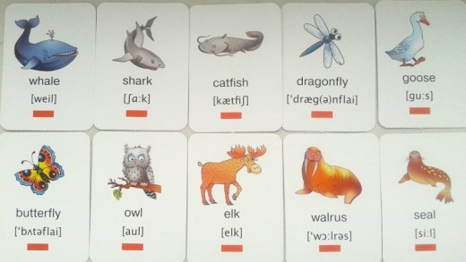 Карточки выполнены и оформлены специально, чтобы привлечь внимание ребенка, и увлечь его в игровой, обучающий процесс. А знания, полученные в игровой форме, как правило, усваиваются и запоминаются ребенком легче и быстрее всего. Поэтому такой способ ознакомления ребенка с английским языком увлечет его надолго и подарит ему массу положительных эмоций.