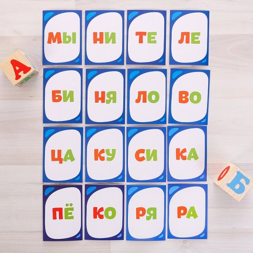 Купить обучающие карточки "Касса слогов 16 шт" в Новосибирске Вы можете в магазине развивающих и настольных игр "Игры Почемучек".