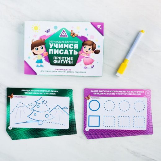 С набором обучающих карточек ребёнок подготовит руку к письму и познакомиться с основными геометрическими фигурами.