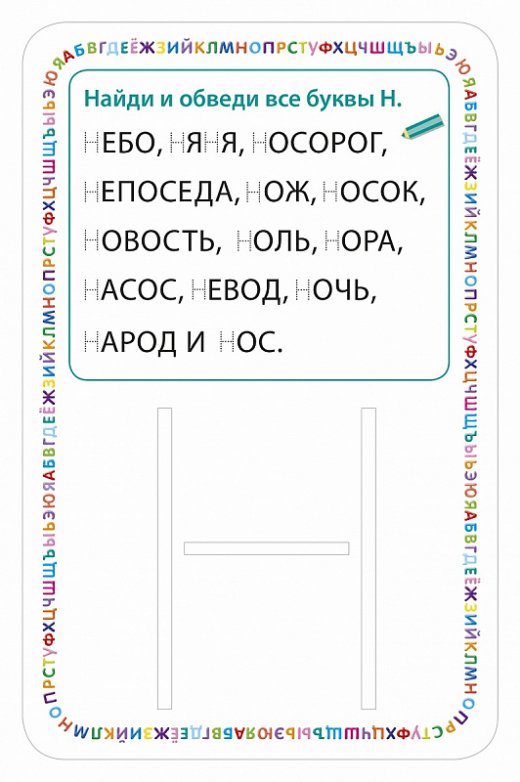 С лицевой стороны карточки вы найдете трафарет с изображением буквы и картинку к ней, на обратной стороне – игровое задание с прописями для тренировки письма.