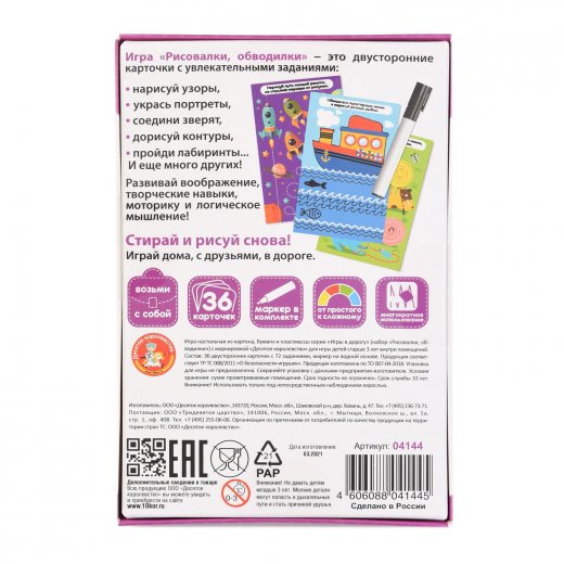 Купить 36 многоразовых карточек Рисовалки Обводилки в Новосибирске Вы можете в магазине настольных и развивающих игр Игры Почемучек.