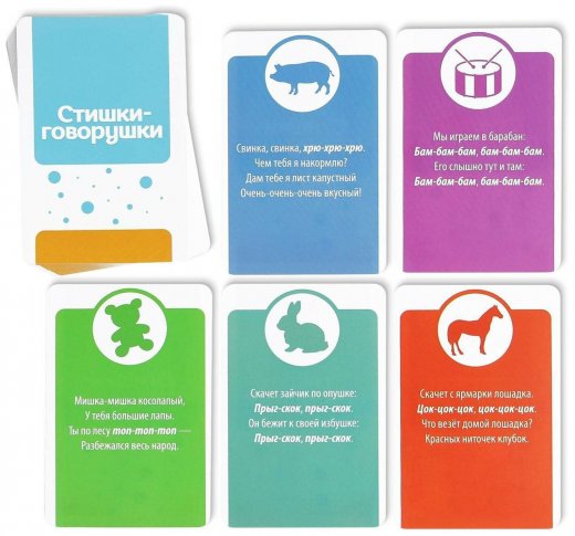 Специально для развития малышей мы подготовили 30 стишков, которые помогут крохе изучить основные звуки, а также самые простые слова и действия. Занятия с этими карточками будут стимулировать речевые навыки малыша и расширят его кругозор.