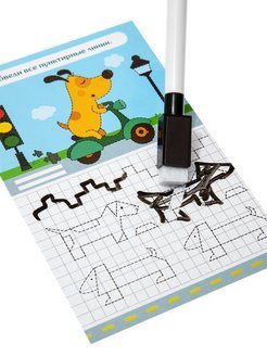 Обводите линии и выполняйте задания, создавая различные узоры и рисунки. Рисуйте по клеточкам. Переходите от простых задач к более сложным. Не бойтесь ошибаться - маркер на водной основе легко стирается обычной салфеткой.