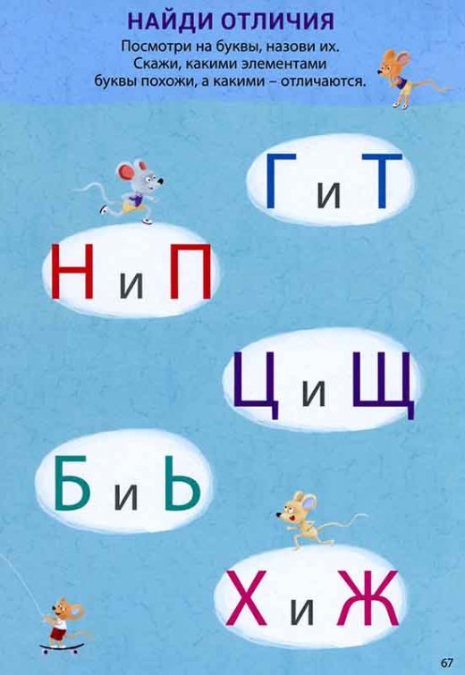 - На узнавание букв (перевернутых в пространстве, зашумленных (спрятанных под штриховку), правильно/неправильно написанных) и элементов, из которых они состоят.