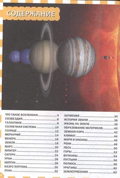 Детская энциклопедия Вселенная и планета Земля – точно понравится вам и вашему ребёнку: небольшой удобный формат, краткая подача материала, только самые важные факты и занимательные истории, а также великолепные иллюстрации. "Вселенная и планета Земля" - это книга о тайнах Вселенной, об устройстве Солнечной системы, а также о жизни на нашей планете. На страницах нашей энциклопедии вы узнаете, какие бывают галактики, что такое сверхновые звёзды и чёрные дыры, отчего случаются землетрясения и ураганы, совершите путешествие в недра Земли, окажетесь в жарких пустынях и на бескрайних ледяных просторах нашей удивительной планеты.