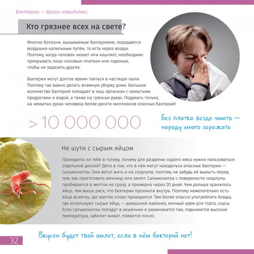 Книга выполнена в удобном квадратном формате и написана легким, понятным ребенку языком. Крупные яркие иллюстрации наглядно показывают все, о чем рассказывается в книге. Интересные сведения о микромире выделены цветом и быстро запоминаются. В книге приведены и простые опыты, которые можно провести прямо дома в присутствии родителей.