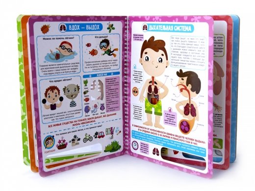 Слимэнциклопедия "Анатомия для детей" с уникальными вырубными окошками на каждой странице и доступным изложением весело и наглядно объяснит маленькому "почемучке" как устроен наш организм. Зачем кровеносная система, как работает мышечная система, для чего нам все кости и позвоночник? Как мы думаем, двигаемся, дышим – все это вы найдете на страницах нашей энциклопедии. Информация представлена в виде иллюстраций, дополненных окошками, с понятным описанием, благодаря чему она становится необычным наглядным пособием. Все страницы собраны на пружину и их так легко и удобно переворачивать. Особая контрастная печать делает картинки максимально насыщенными и реалистичными.