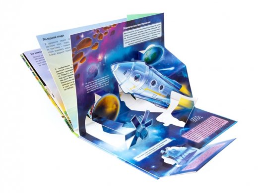 Pop-up энциклопедия "Космос" с невероятными объемными иллюстрациями. 3D-развороты создают ощущение дополненной реальности и настоящего путешествия в космос. Каждая картинка - настоящая декорация с уникальной объемной формой и полезной информацией. Ведь это еще и энциклопедия с интересными фактами о космосе, которая так ярко и наглядно познакомит малыша с космическим миром. А еще на каждом развороте есть откидной клапан-сюрпиз, заглянув под который малыш увидит интересный факт или изображение. Наличие объемных и открывающихся элементов развивает мелкую моторику и пространственное мышление. Особая контрастная печать делает картинки максимально насыщенными и реалистичными.