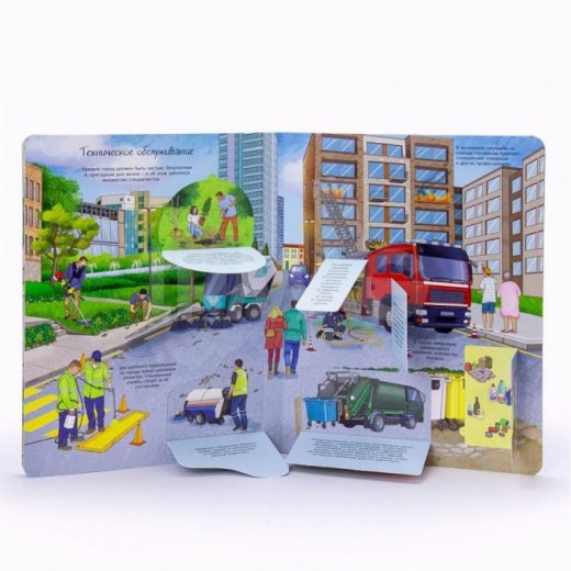 Интерактивная энциклопедия с картонными страницами, бумажными окошками, понятными, красочными иллюстрациями и интересными сведениями! В каждом окошке энциклопедии про город "спрятаны" увлекательные факты и изображения, которые позволяют ребёнку узнать, как устроен город, заглянув вовнутрь предмета, процесса или явления. Информация в книге с окошками для детей представлена небольшими текстовыми блоками, определения звучат легко и понятно. Детская энциклопедия познакомит ребёнка с техническим обслуживанием, транспортом, устройством и жизнью города.