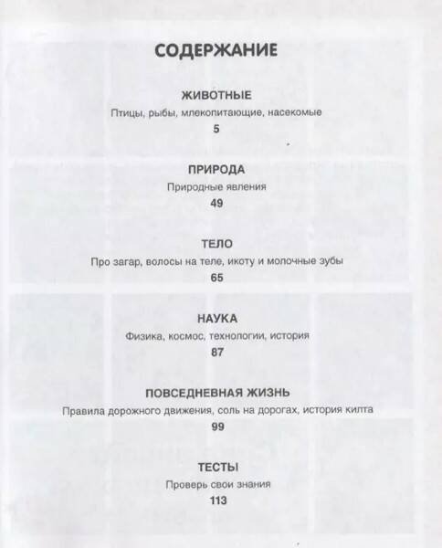 В энциклопедии собраны поразительные факты о животных, природных явлениях, анатомии человека и даже истории разных стран. В конце книги даны тесты для закрепления полученных знаний.